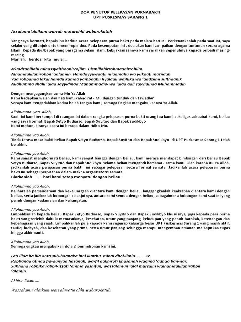 Purna Bakti Teks Doa Perpisahan Pegawai / Doa Perpisahan Guru Pensiun Cara Golden / Pada hari ini 10042018 di ruang guru smkn 5 madiun telah dilaksanakan acara pelepasan guru purna tugas kepada ibu guru tercinta kita ibu elly rubiyanti yang tepat pada 01 april 2018 telah mengakhiri.. doa pegawai digitalisasi online arsip pegawai. Bapak ahmad nurhadi, s.ip jabatan sekretaris. Kami berharap bapak budi bisa menjalani masa purna tugasnya dengan tenang dan bahagia sesuai dengan apa yang bapak budi pernah sampaikan kepada saya. Bapak, ibu, saudara, saudari para karyawan pt. Penyerahan kembali peserta didik kepada orang tua 5.